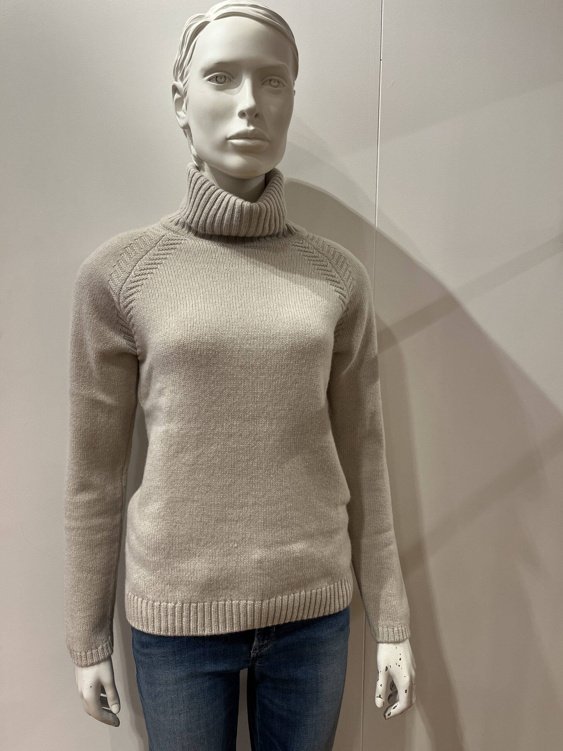 Belluna Palma coltrui is een coltrui met dubbel geslagen col- in een rib gebreid en mooi steek in de mouwinzet.