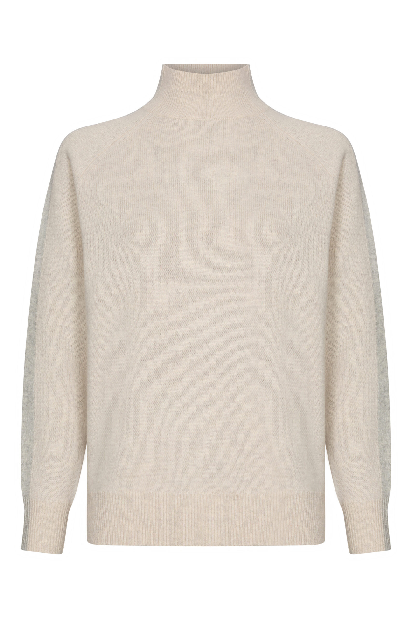 HET! Amsterdam Sweater/ Trui €179,95, nr. HF25-02 Kleur-Beige met Light Grey Streep op mouwen