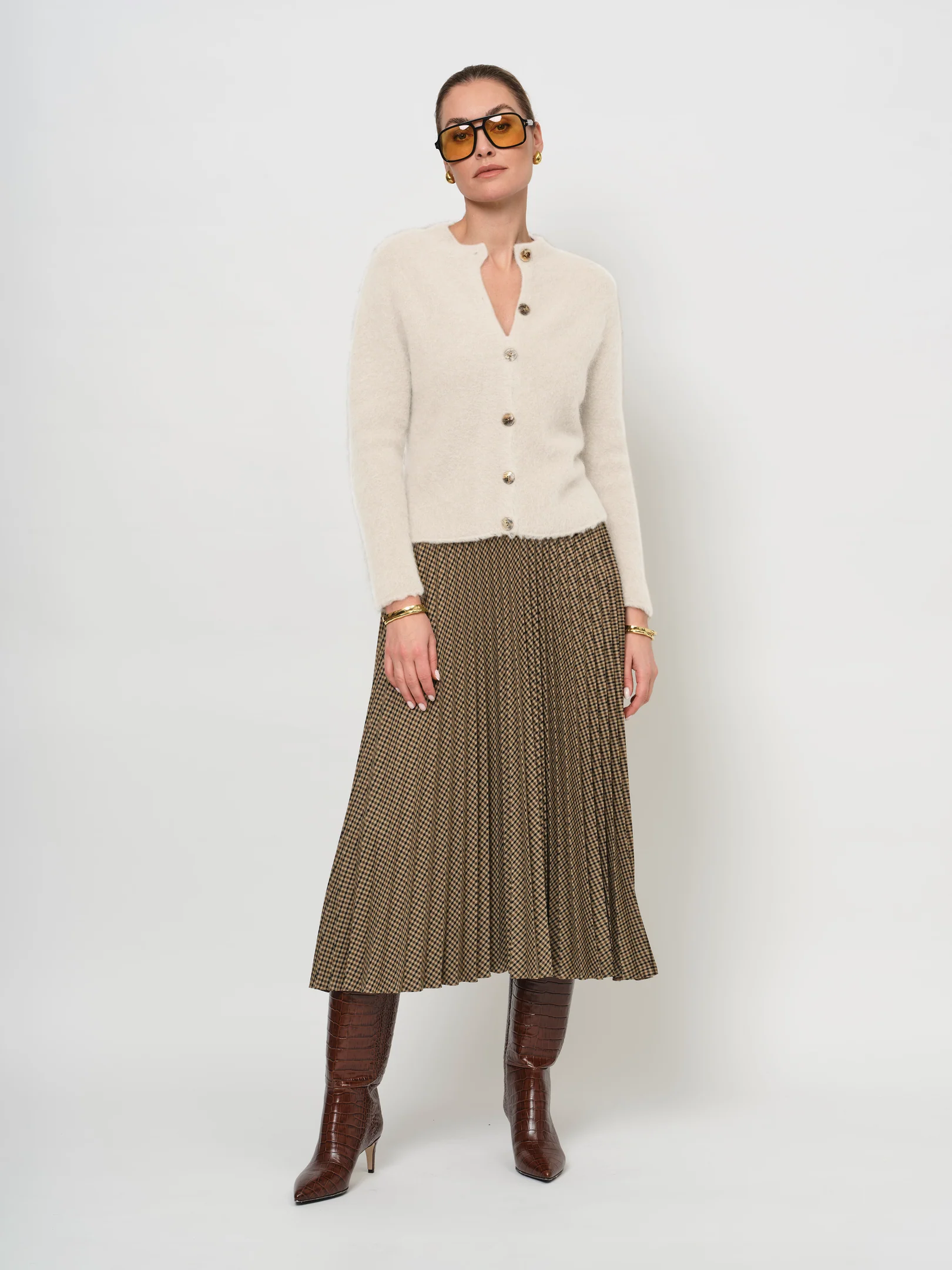 Made from premium alpaca yarn, this boxy cardigan is incredibly soft and not itchy. Full button down, slim fit.