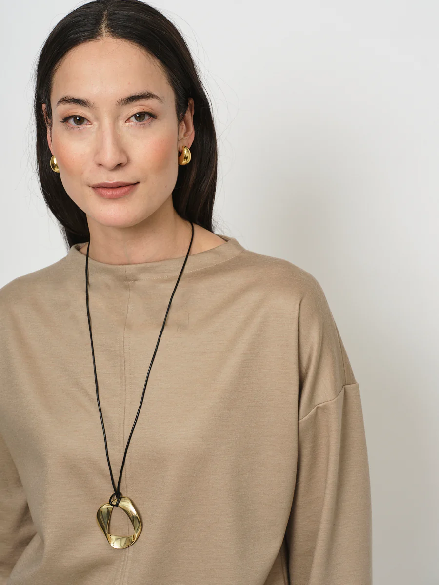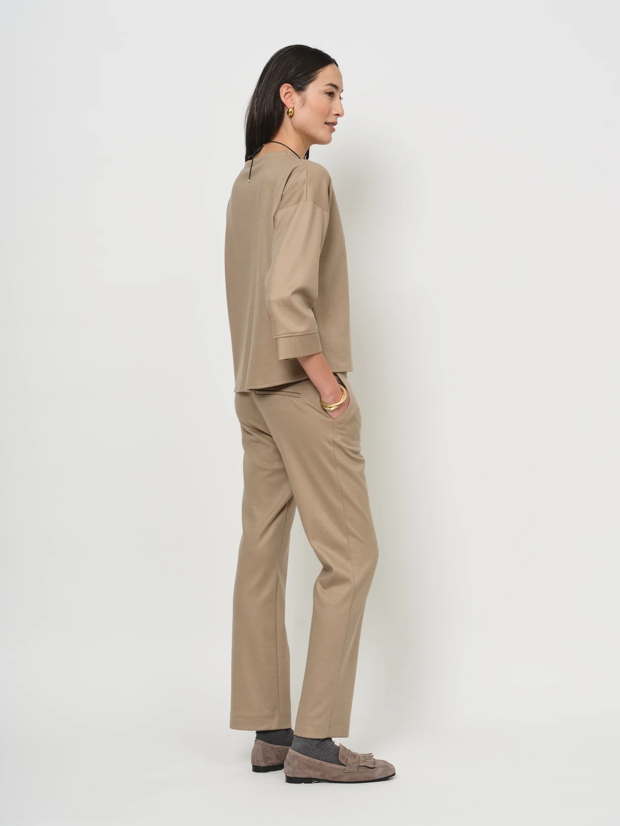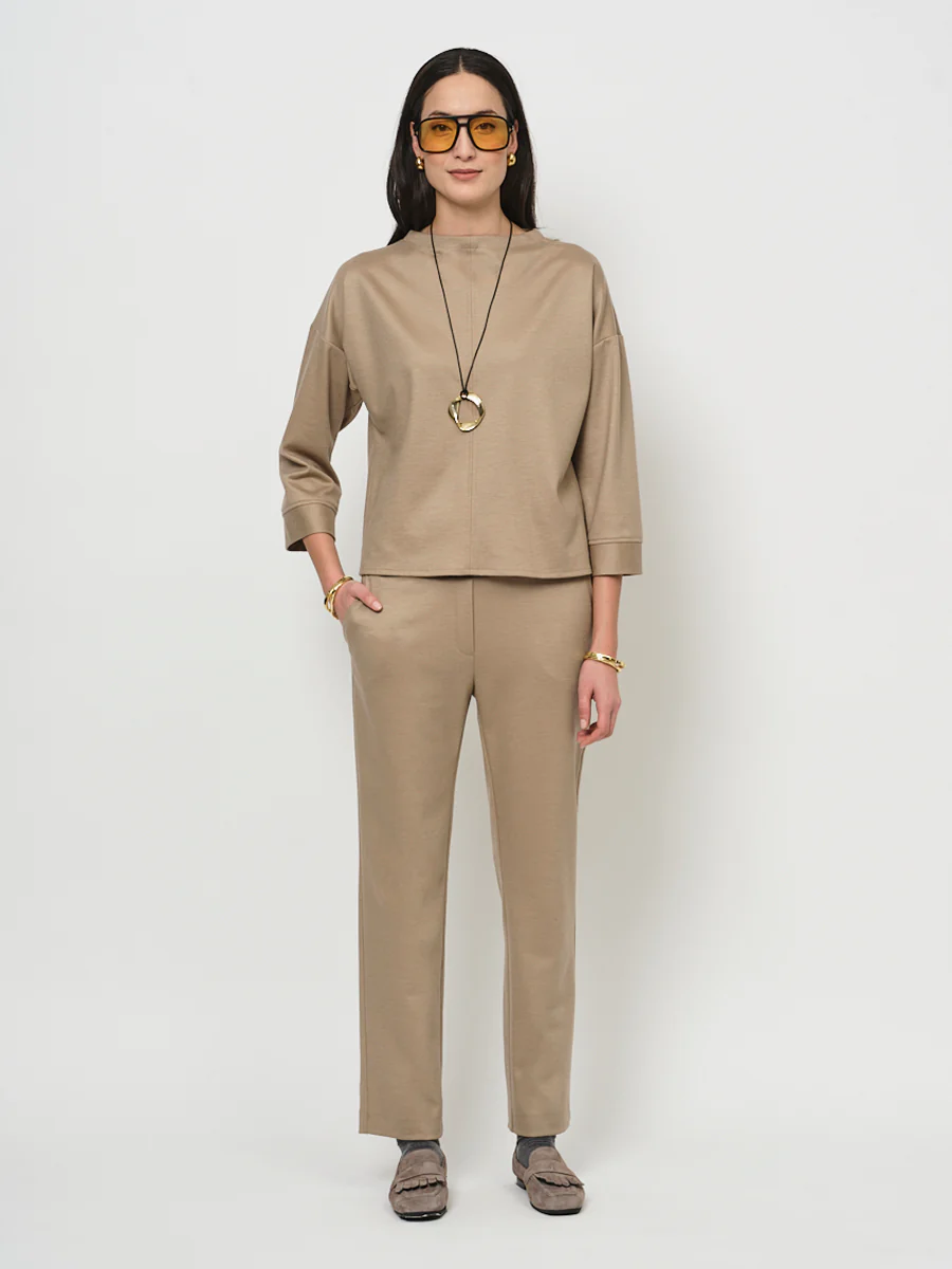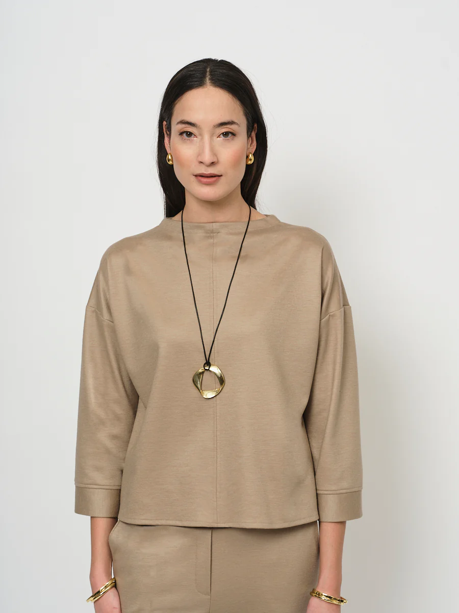 An elevated essential piece, made from soft wool punto milano fabric that combines comfort and quality. A raised boat neck and 3/4 drop shoulder sleeves.