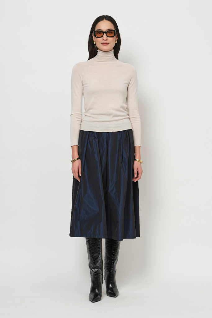 Make a statement this winter with our standout skirt, crafted from Taffeta fabric. The silhouette is incredibly flattering despite its voluminous design, thanks to the airy material, which flatters the body no matter the shape. Pair it with a sweater for a chic, effortless look.