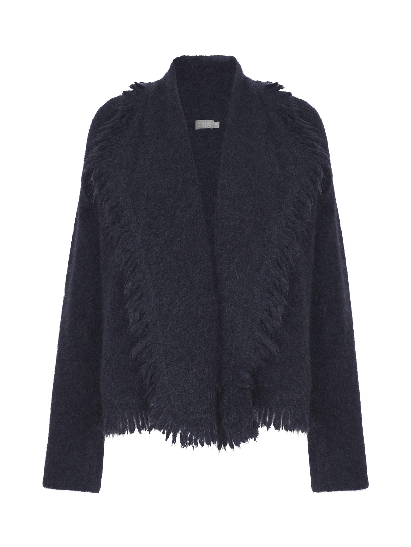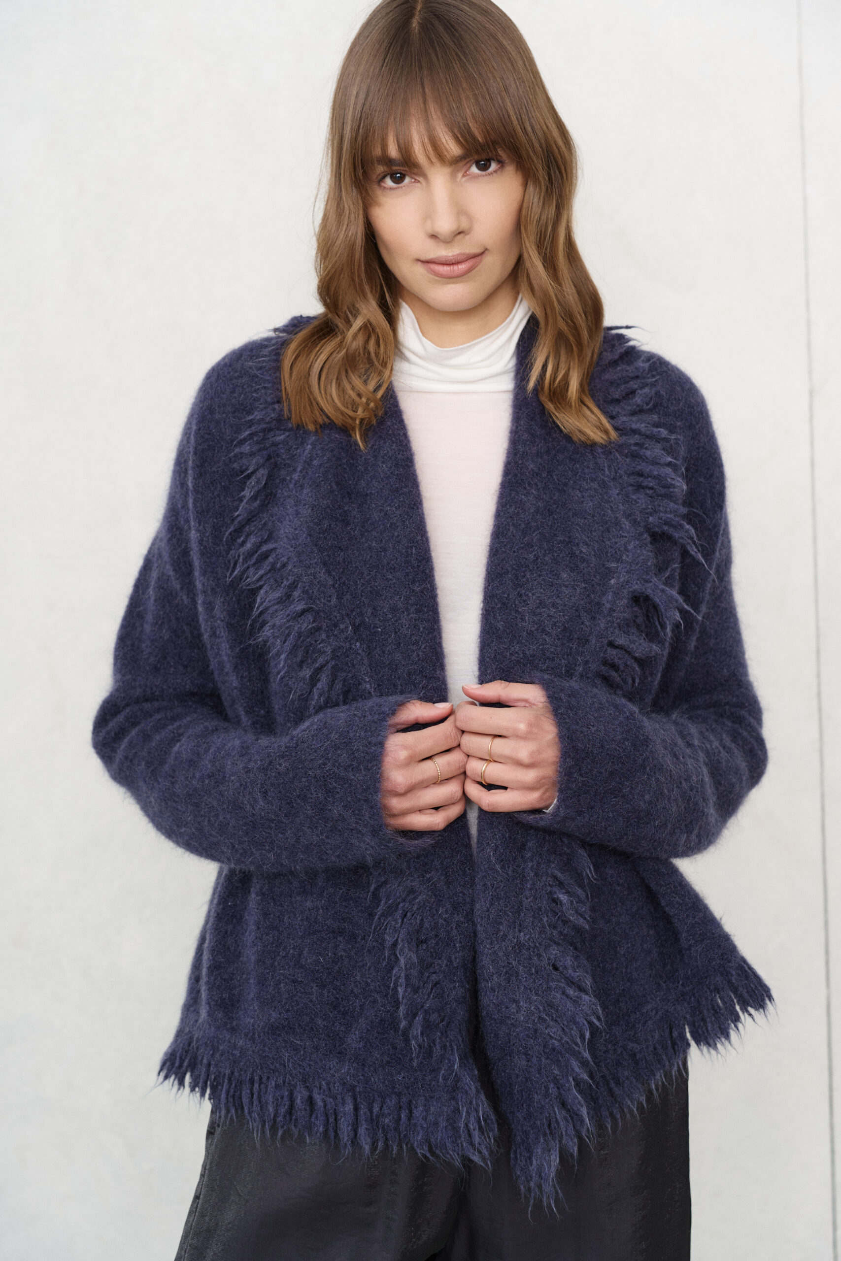 No Man’s Land Mohair Cardigan/Vest met franjes €359,95, nr. 64.177 Kleur-16 Blue Black