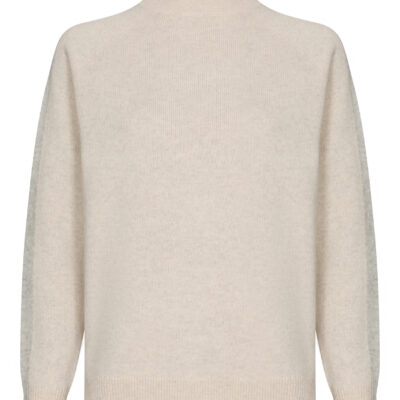• HET! Amsterdam Sweater/ Trui €179,95, nr. HF25-02 Kleur-Beige met Light Grey Streep op mouwen